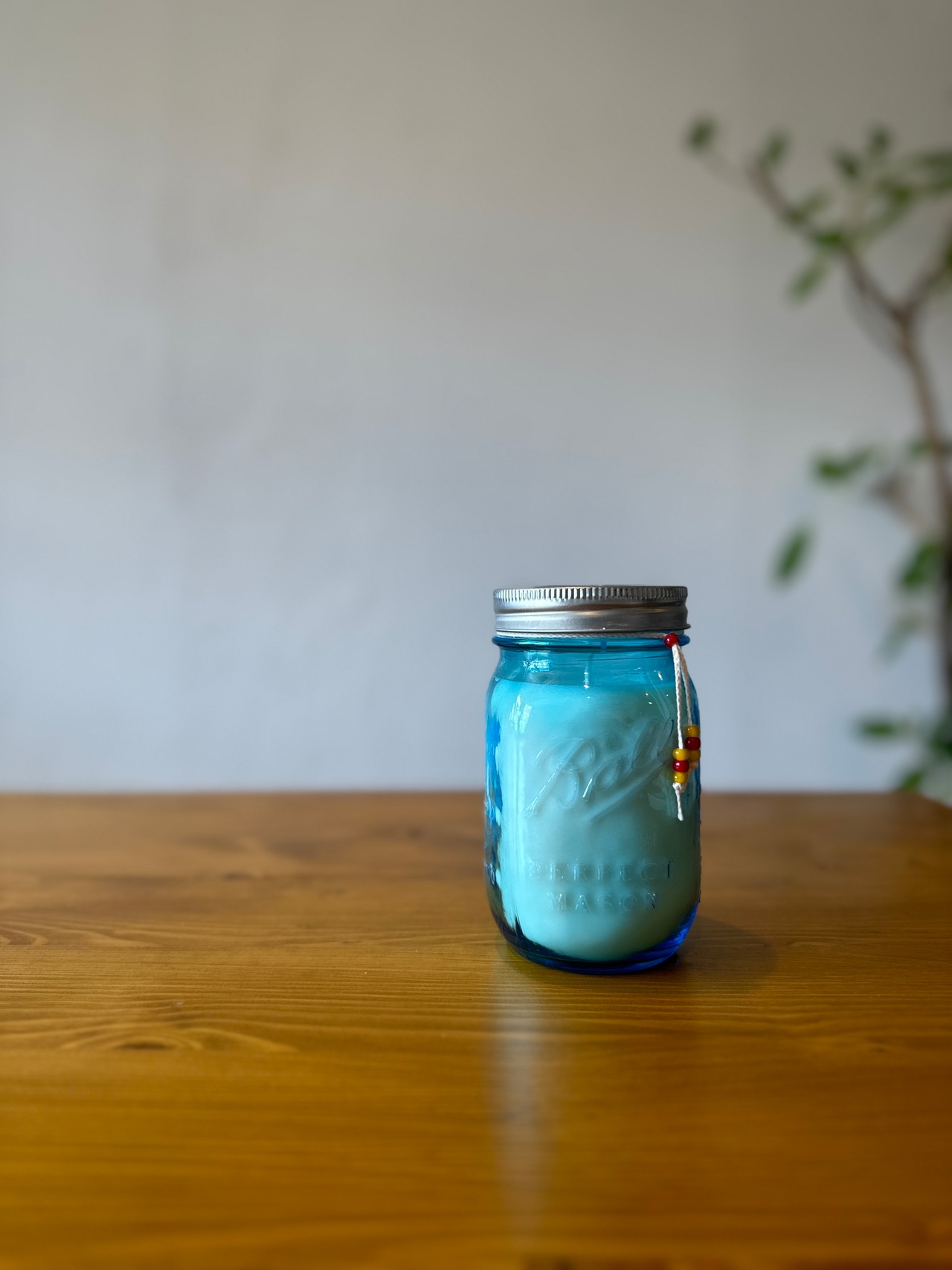 Ball mason jar regular mouth 16oz blue aroma soy candle